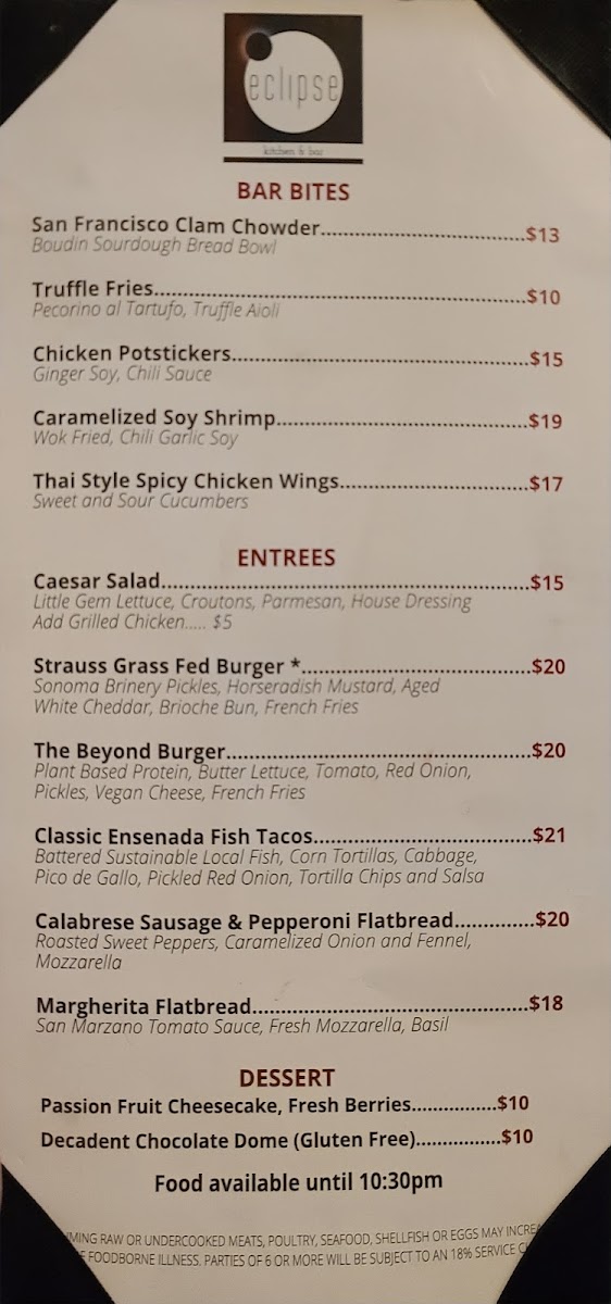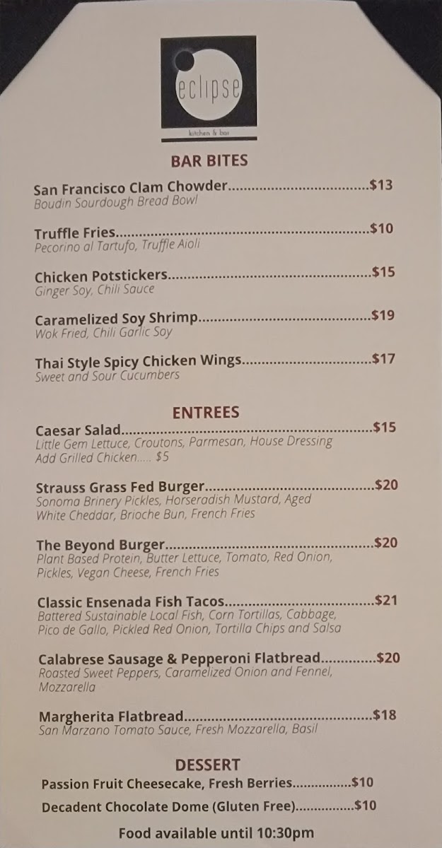 Visit Eclipse Kitchen & Bar at 5 Embarcadero Ctr, San Francisco, CA 94111, or call them at +1 415-291-6581 for reservations. Whether you're in the mood for a casual bite or a special dining experience, Eclipse guarantees a memorable culinary escape!