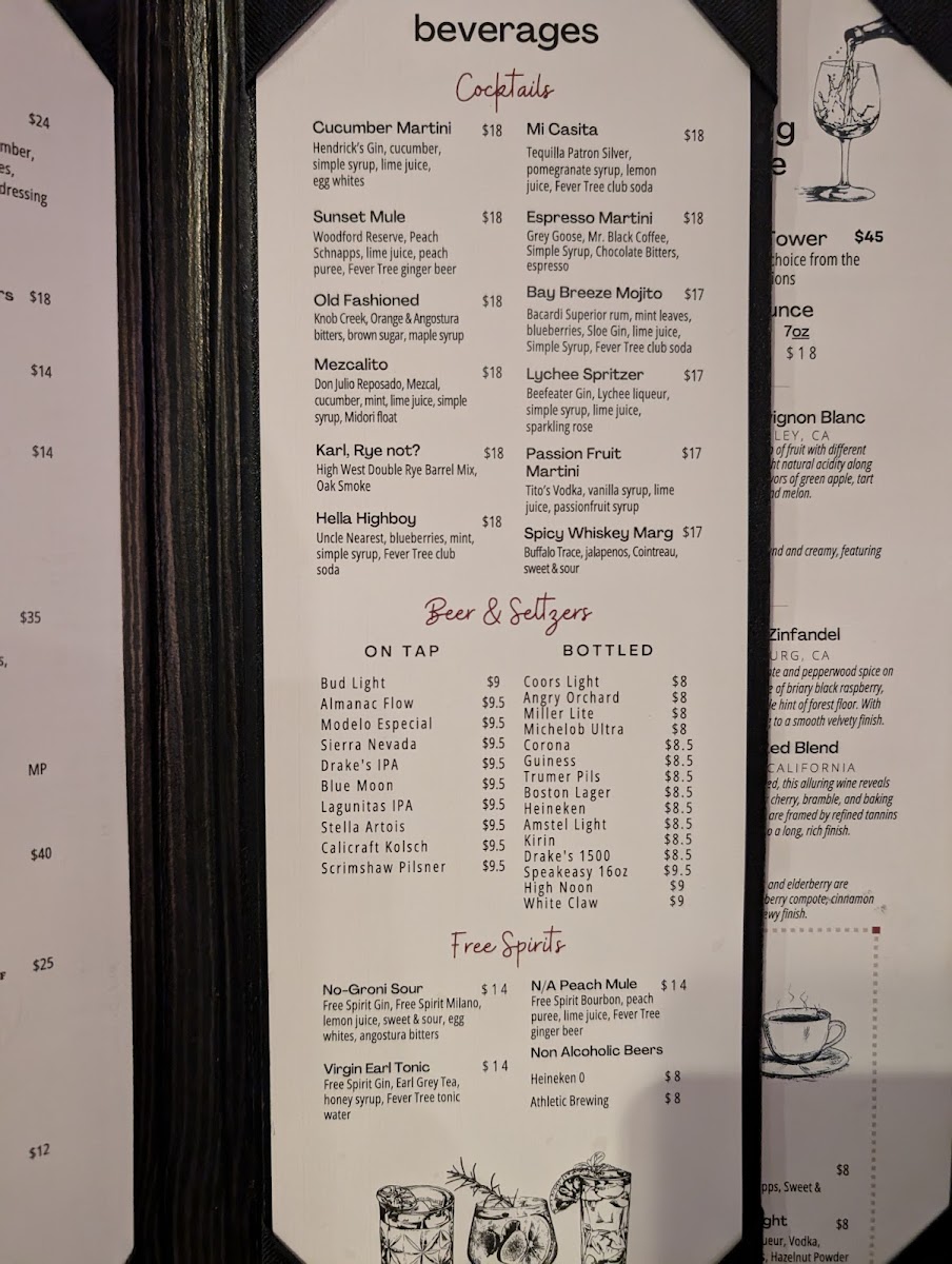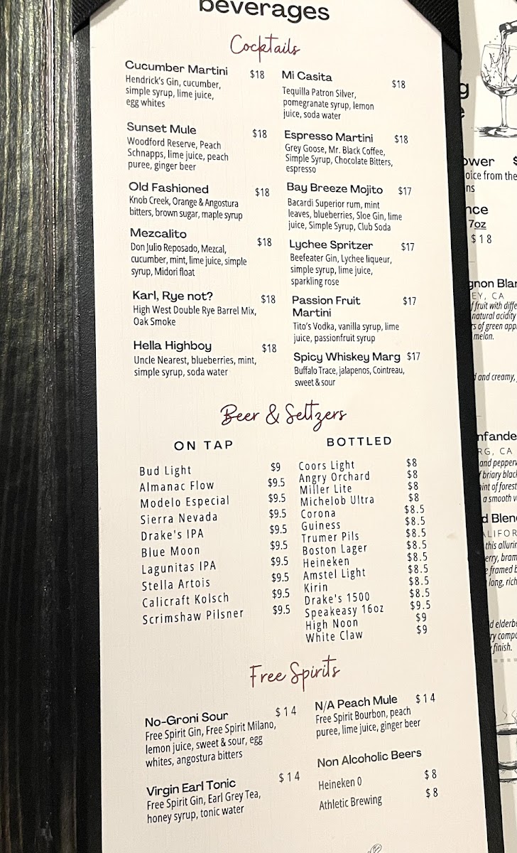 When it comes to hearty entrees, you have a choice between delightful classics and innovative dishes. The Strauss Grass Fed Burger, adorned with aged white cheddar and house-made pickles, plays on nostalgia while delivering robust flavors for $20, while the Classic Ensenada Fish Tacos feature sustainable local fish, a burst of freshness from pico de gallo, and a zesty kick, all for $21. If you prefer plant-based options, the indulgent Beyond Burger is sure to impress even the most dedicated meat lovers.